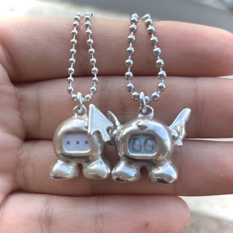 Due to the nature of the silver ball chain, there may be slight discoloration when worn with white clothing.